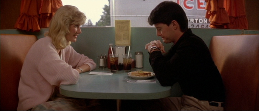 Everything about the film seems to confuse the viewer as to when it was set, and that definitely includes the way in which it was shot. Much of the action plays out in wide shots (take a look at how we see Dorothy and Ben’s apartments) which is reminiscint of how films from the 50’s would be shot.