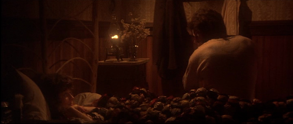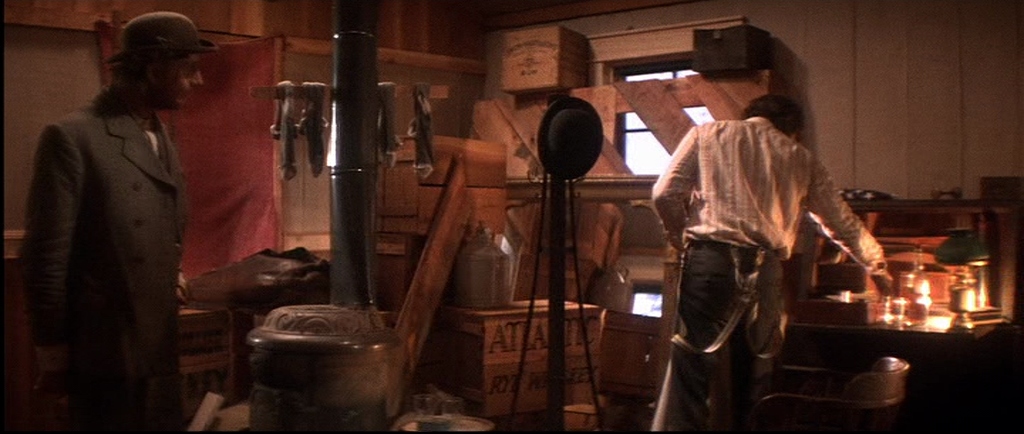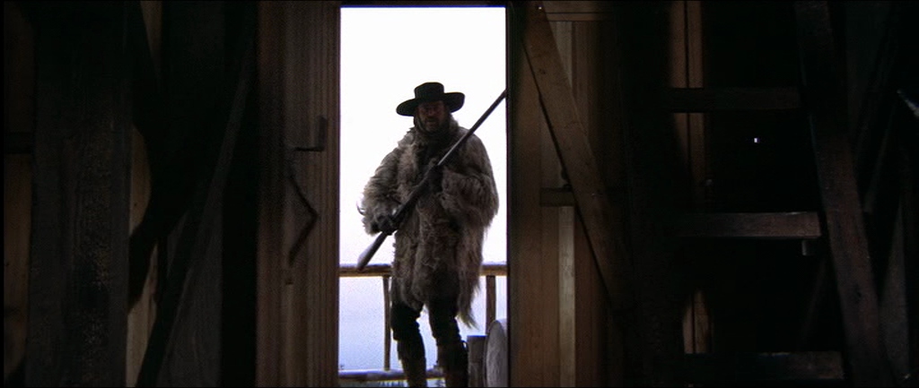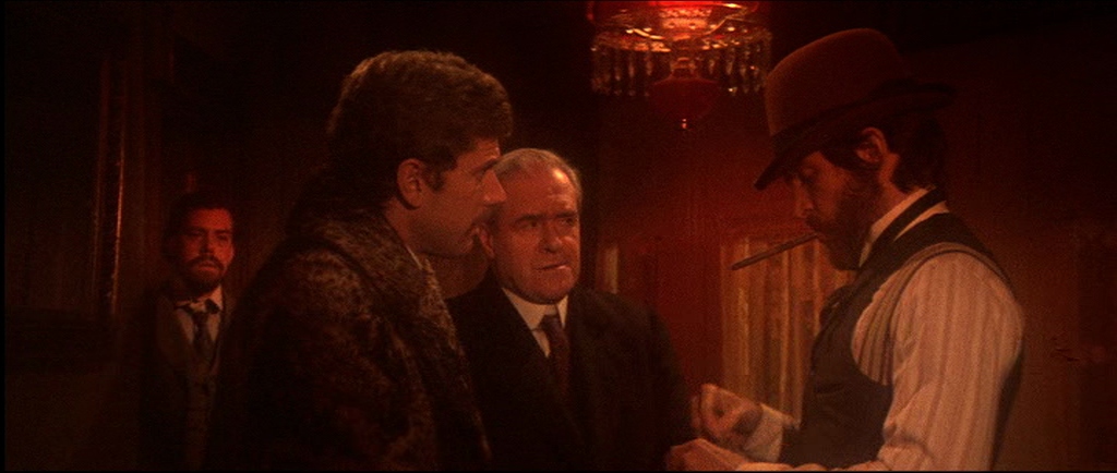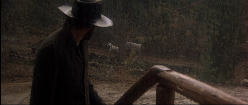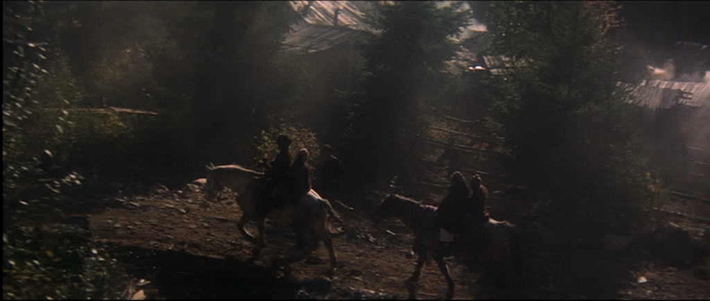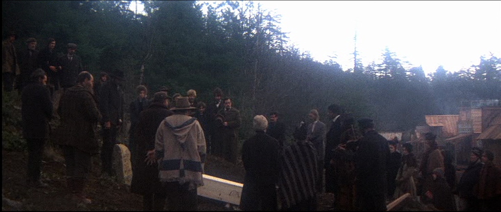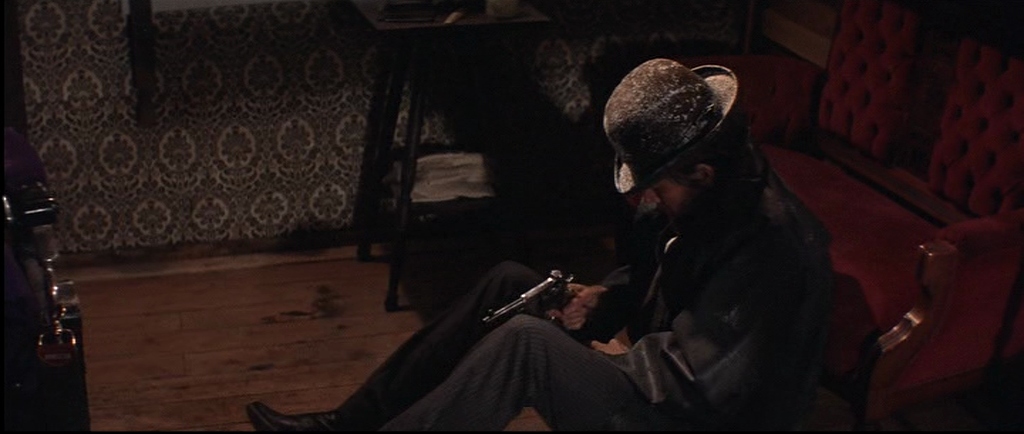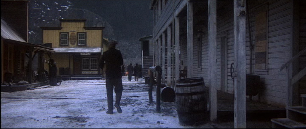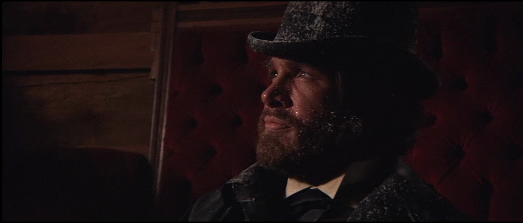 I think it’s a truly brilliant film. The acting is naturalistic and the photography is spectacularly good. I loved the early scene in the saloon when amid the gloom an oil lamp (seen in image 4) suddenly illuminates the card player’s faces and a couple of seconds later it’s like a Dutch Old Master painting by Rubens or Vermeer. Beautifully lit and composed. The other shot that reminds me of a painting is just as the ‘Bearpaw whores’ are riding into town (two or three seconds before image 10) with the trees backlit by the winter sun – it’s like a Monet.