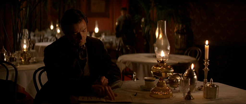 I had actually forgotten how handheld this movie was. Nolan’s approach to The Prestige drops us right into the action, keeping us right in the middle of all the backstage discussions and fighting.